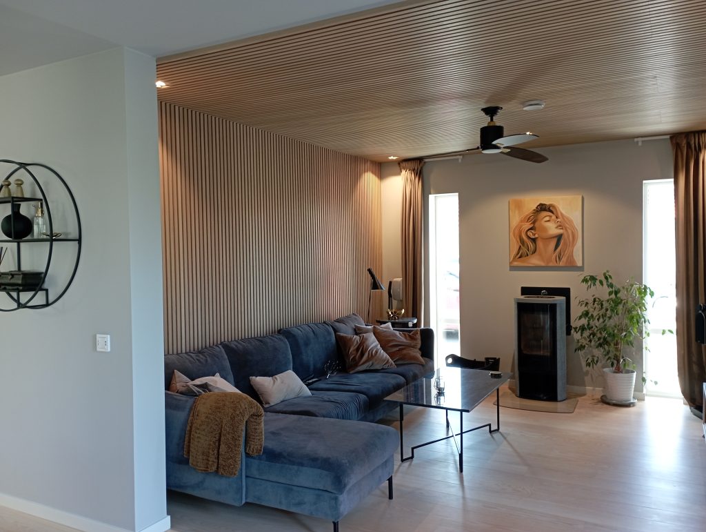 Akustikpaneler i tak är en effektiv lösning för att dämpa eko och efterklang, något som ofta uppstår i moderna hem med öppna planlösningar, hårda material och generösa takhöjder. Genom att absorbera ljudet istället för att låta det studsa mellan väggar och tak skapas en lugnare och mer behaglig ljudmiljö – perfekt för både vardagsliv och sociala tillfällen.