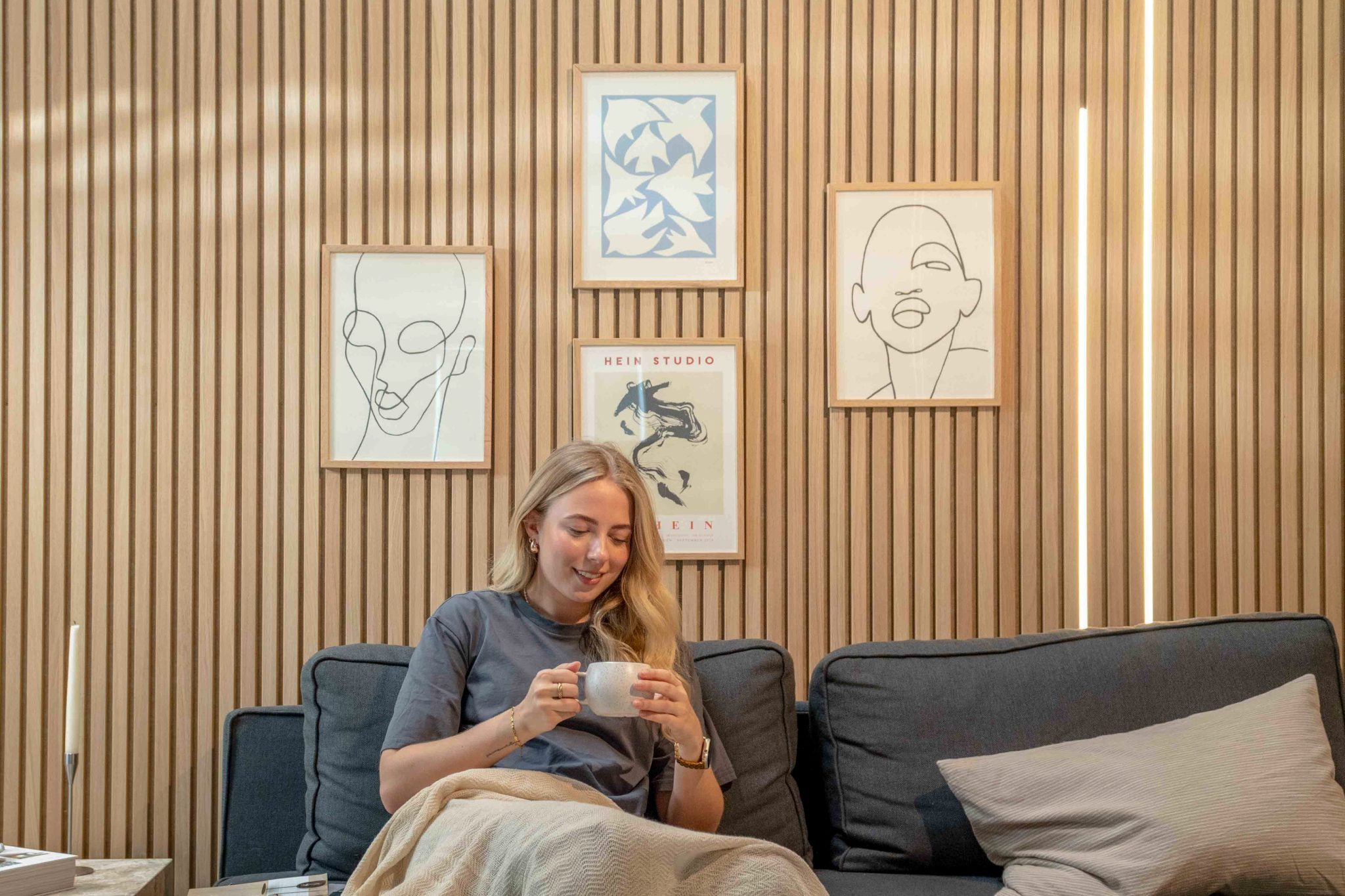 Tänk dig att komma hem till ett rum som inte bara ser vackert ut – utan också låter vackert. Där ljudet dämpas och dagens kaos övergår i stillhet. Vi tror att lugnet är grunden för välmående. Därför absorberar våra paneler ljud och minskar efterklang. Men det handlar om mer än funktion – det är en känsla.
