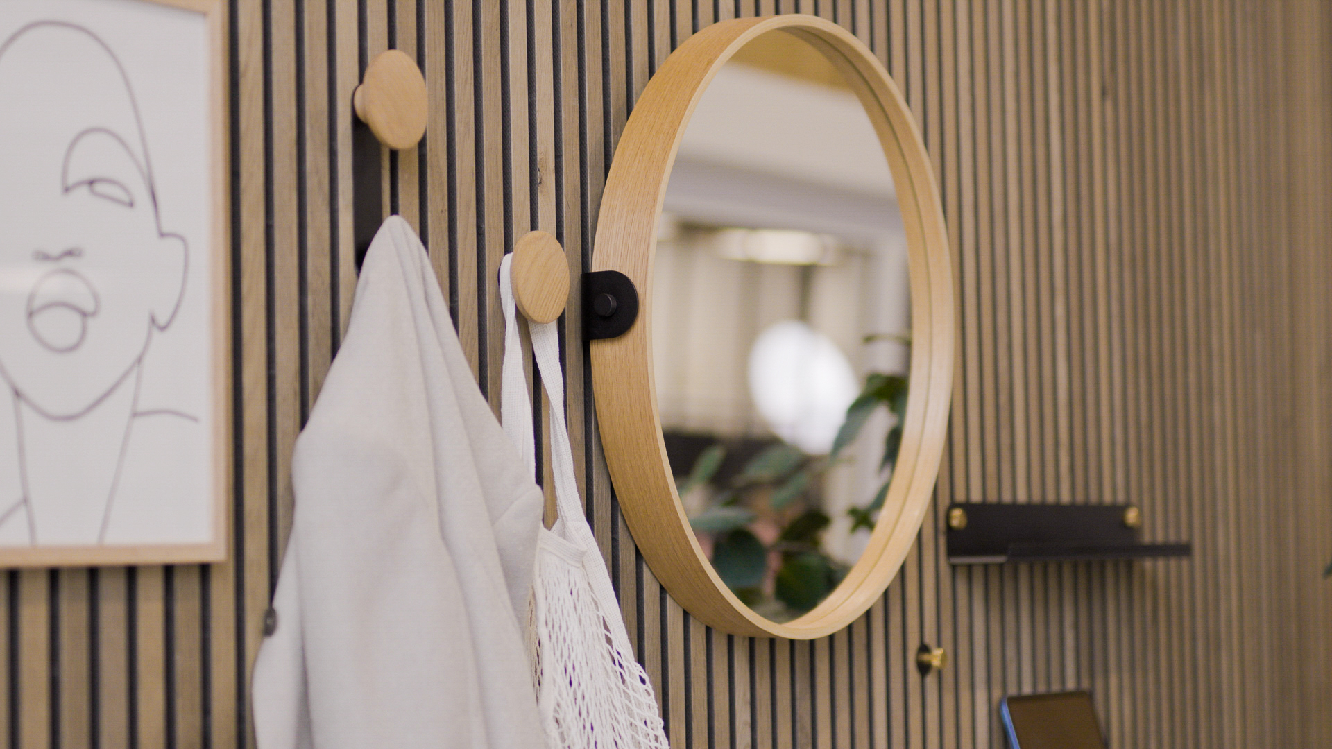 Det är precis därför vi skapade CREATE-systemet. Ett flexibelt sätt att hänga upp hyllor, krokar och tillbehör direkt på dina Akupanels – så att ditt rum kan förändras lika ofta som du gör. Enkla att montera. Enkla att flytta. Lätt att leva med. För komfort handlar inte bara om mjukhet. Det handlar om enkelhet.
