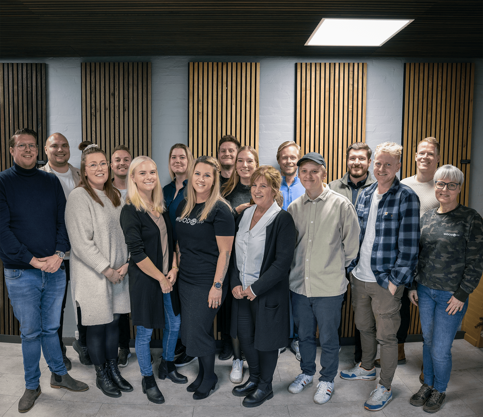 År 2019 blev Mads så upptagen att han inte kunde följa med. Så han beslutade att ta in nya partners, Mikkel (höger) och Troels (vänster), och de anställde även de första medarbetarna. Vid årets slut arbetade 5 personer heltid på WoodUpp.