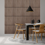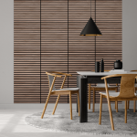 Akupanelet kan användas för att skapa vackra lamellväggar och tak som ger en modern look till rummet. Panelet är ljuddämpande och tar bort eko inne i rummet vilket markant förbättrar akustiken i rummet.