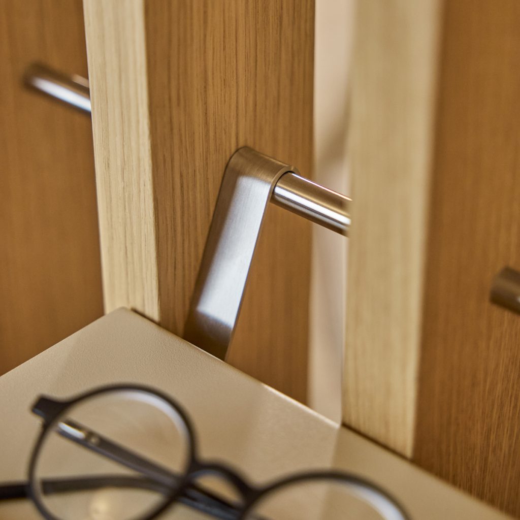 Alva S-Hook tillför flexibilitet till ditt Embrace-system. Den ger vardagliga föremål en enkel plats att hänga och gör det lätt att justera ditt rum när rutiner förändras — utan verktyg eller installation.