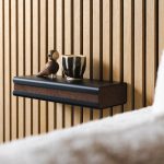 Nyckelfacket är en stilren hylla med en hemlighet: en skjutbar låda i kork som gömmer vardagens småprylar och får rummet att kännas lugnt och harmoniskt.