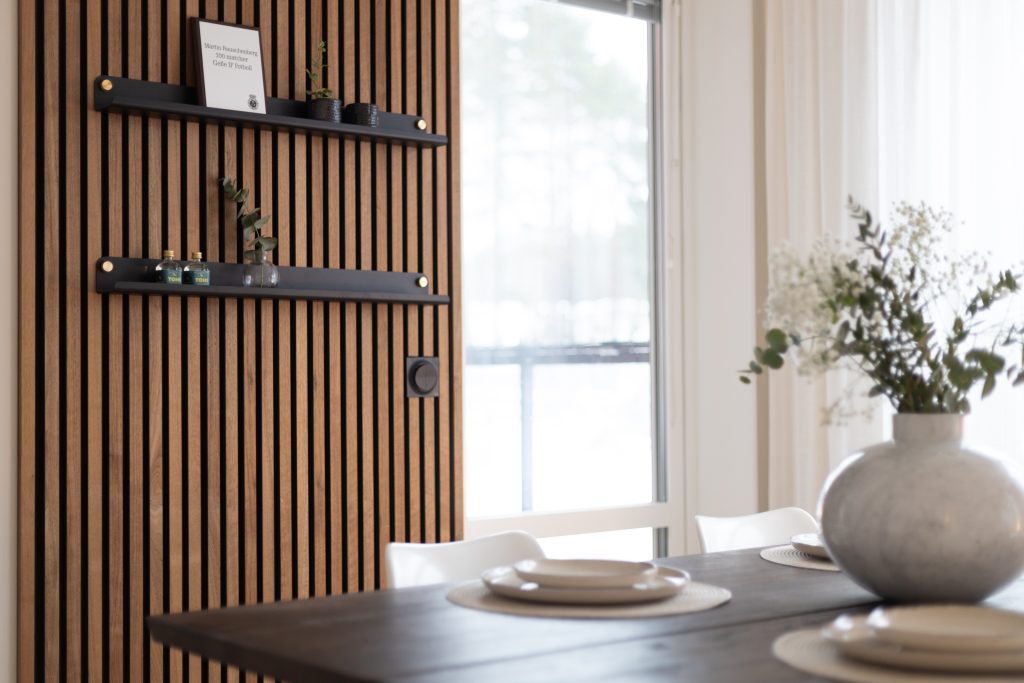 Ett snyggt monterat uttag gör att panelväggen känns komplett.